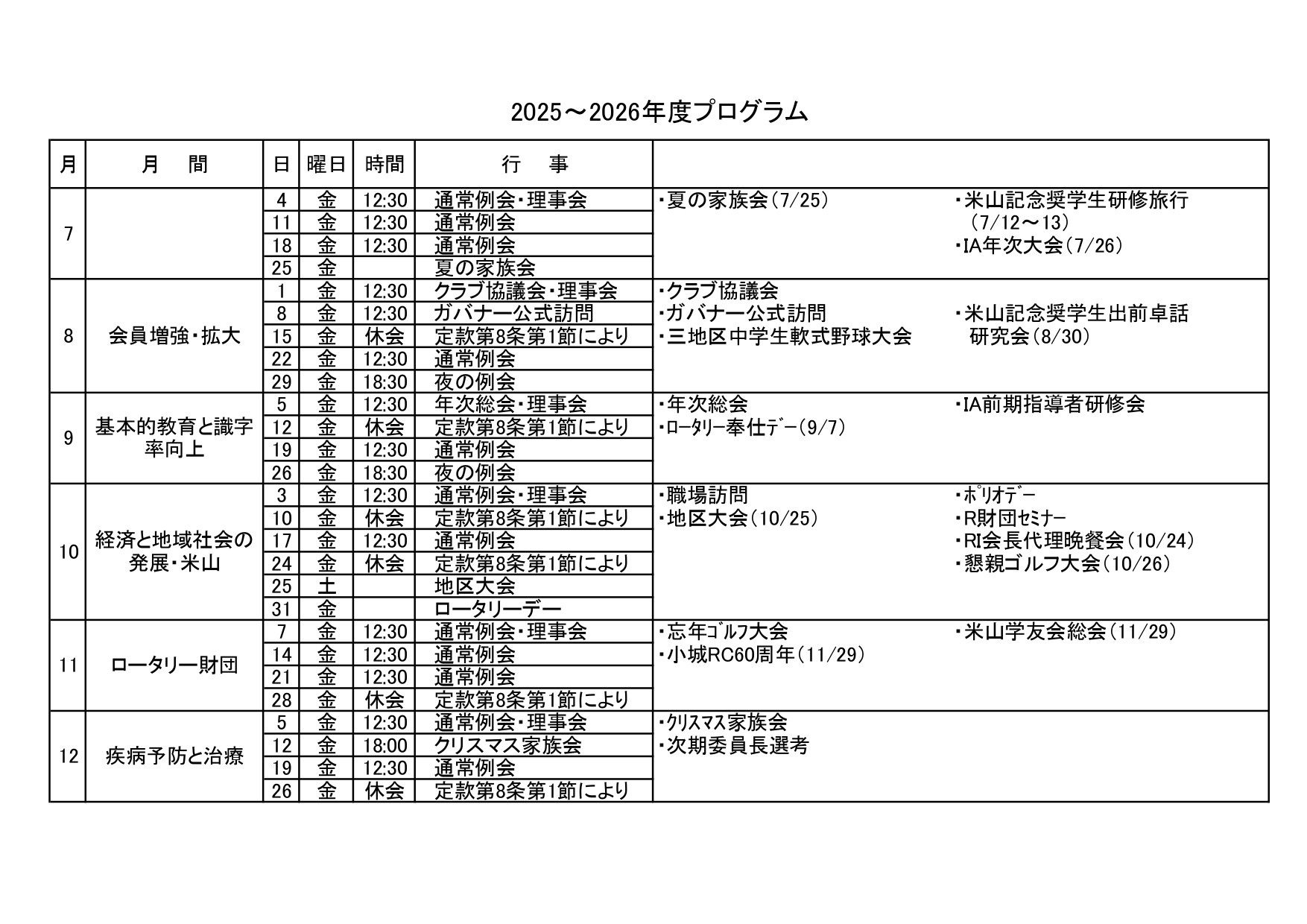 活動スケジュール